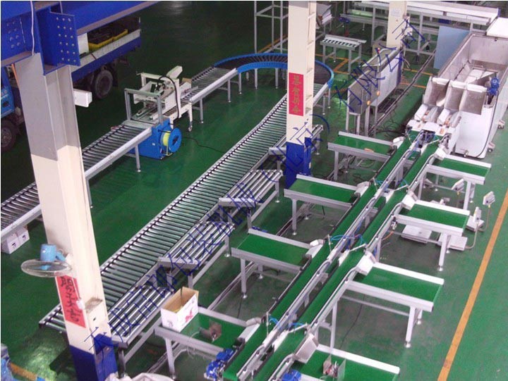 結(jié)構(gòu)形式有:槽型皮帶機、平型皮帶機、爬坡皮帶機、轉(zhuǎn)彎皮帶機等多種形式,輸送 帶上還可增設(shè)提升擋板、裙邊等附件,能滿足各種工藝要求。輸送機兩側(cè)配以工作臺、加裝燈架,可作為電子儀表裝配,食品包裝等裝配線。